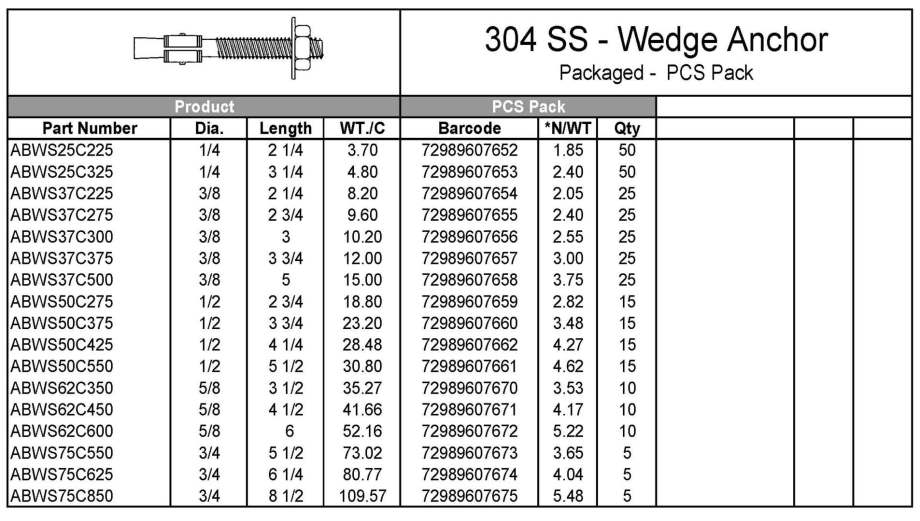 -Steel & 304 SS Wedge Anchors