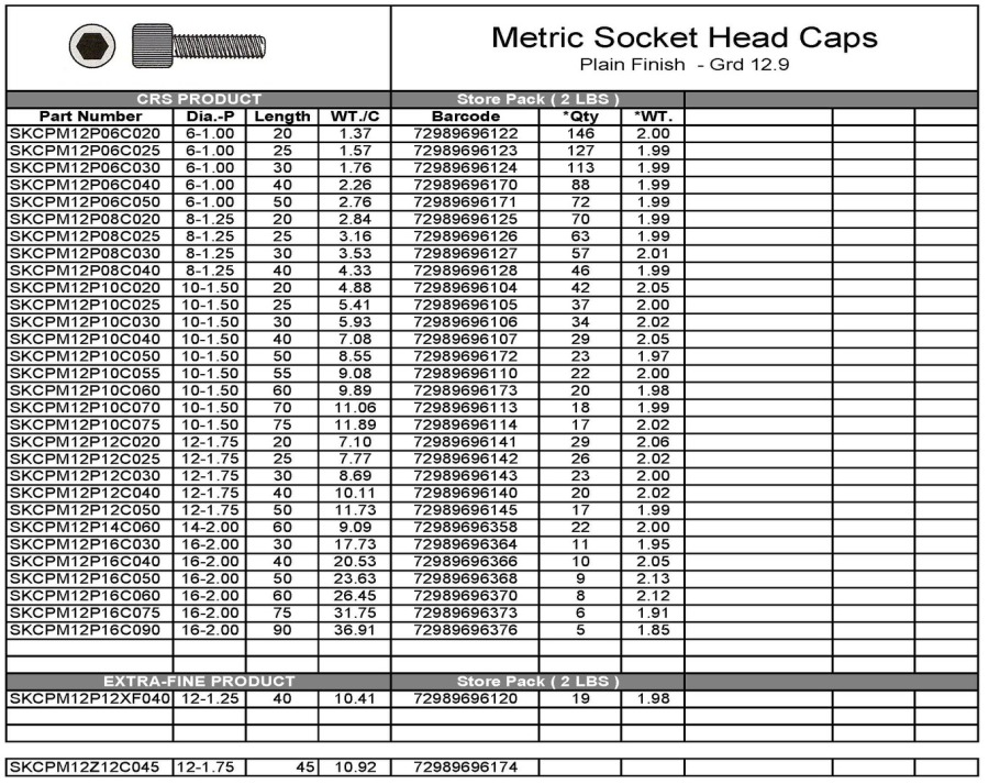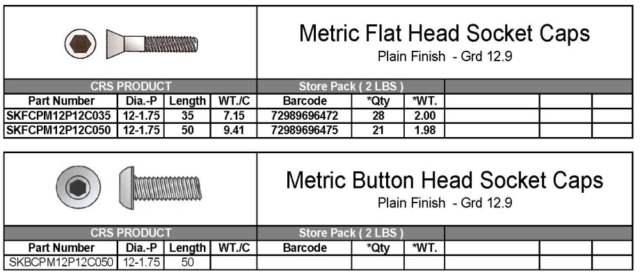 Below is Present Stock of Machine Screws, Metric Socket Head Caps, &